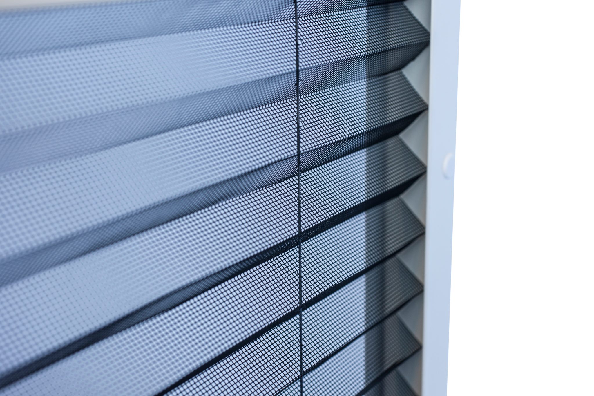 De vaste raamhor plissé is een stijlvolle, vaste raamhor voorzien van het bekende, gevouwen gaas, vergelijkbaar met de plissédeur. Het gaas zit geïntegreerd in een vast aluminium frame waarvan de hoeken in verstek zijn gezaagd. De vaste raamhor plissé heeft geïntegreerde handgrepen in de treklijsten. De treklijsten zijn voorzien van het unieke vergrendelsysteem, waardoor de hor gemakkelijk in elke gewenste stand gepositioneerd kan worden. Is gemaakt voor montage op het kozijn.